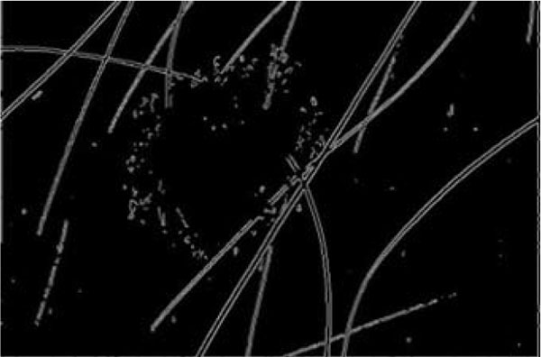 In general, contour segmentation methods can be either region-focused or edge-focused. Edge related contour segmentation typically applies edge detectors to estimate stopping function for terminating contours at distinct edges, making it unusable for fuzzy edges. Region related contour segmentation computes region energy based on the mean value of lesion image intensity and consequently uses global image information to terminate contours even for indistinguishable edges. Most contour-oriented lesion segmentation techniques are more or less similar to their region-based segmentation method counterparts. The similarity is due to the usage of seed-based approach in categorising image region according to the common criteria between both methods. Contour oriented segmentation is often referred to as snakes [219]. Frequently used contour-oriented methods include adaptive snake, robust snake [276], Gradient Vector Flow (GVF) snake [277, 278], Mean-Shift based GVF [279-282], level set [263, 264, 276, 283, 284] and radial search [285, 286]. Mete & Sirakov [287] discussed enhancing active contour model with optimum parameters, including high boost filtering to achieve comparable segmentation results with other state-of-the-art segmentation methods. Similarly, Ivanovici & Stoica [288] suggested that a diffusion model for colour images can be used as external energy for active contours in order to achieve lesion segmentation by independently computing diffusion at various scales. The study reported by Yuan et al. [284] equally introduced a region-fusion-based segmentation framework by combining graph partitioning methods with chan-vese level set to achieve a comparable lesion segmentation result. In addition, Kasmi et al. [289] recently proposed a geodesic active contour (GAC) based lesion segmentation method that employs an automatic contour initialization close to the actual lesion boundary. This approach was lauded to address the sticking challenge at minimum local energy spots typically caused by noise artefacts such as hair shaft. Fig. (5) displays an example of result after applying contour-based techniques called Line Segmentation Detection (LSD) [290] on an image in order to segment occludinh hair artefacts.