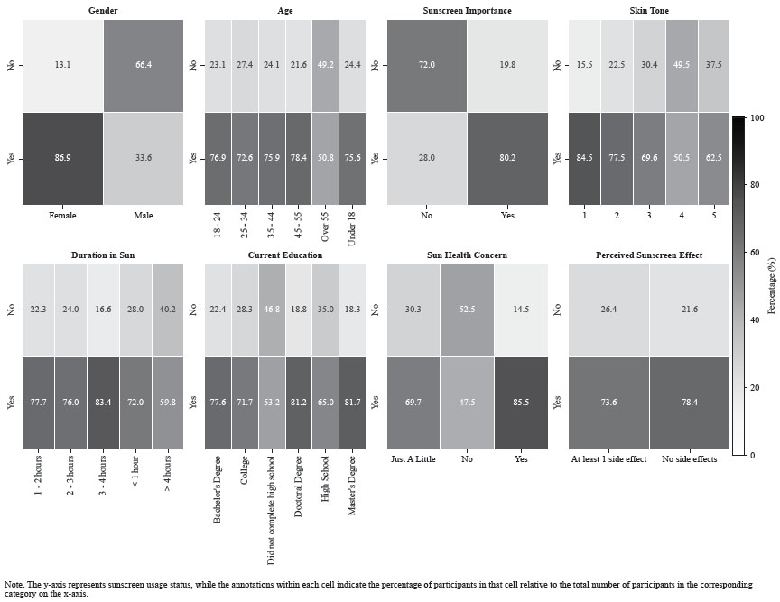 Heatmap Analysis of Demographic and Behavioral Factors Influencing Frequency of Sunscreen Usage.